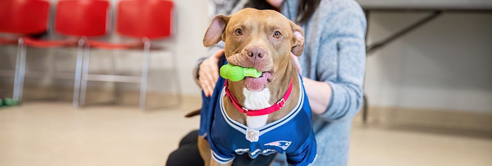 Our adoptable pups have been showing off their Patriots pride, sporting jerseys and bandanas generously donated by the Patriots Foundation. The shelter has been filled with team spirit—and plenty of wagging tails. Search adoptable dogs.