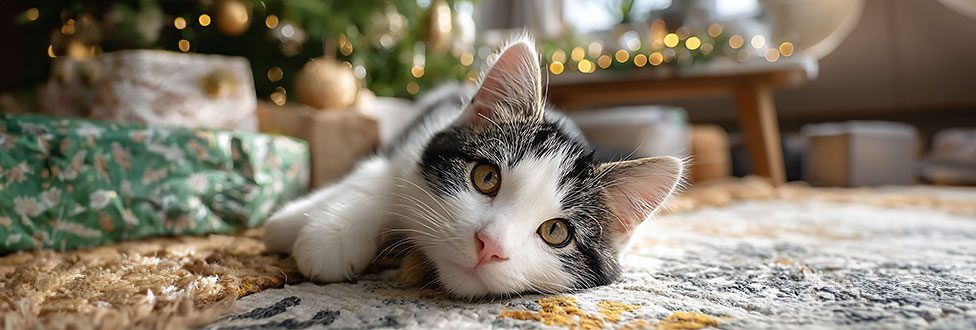 If you have a Christmas tree, make sure it’s anchored so it doesn’t tip over and injure your pet, and also be sure to keep pets from drinking the tree water which could cause gastrointestinal discomfort.